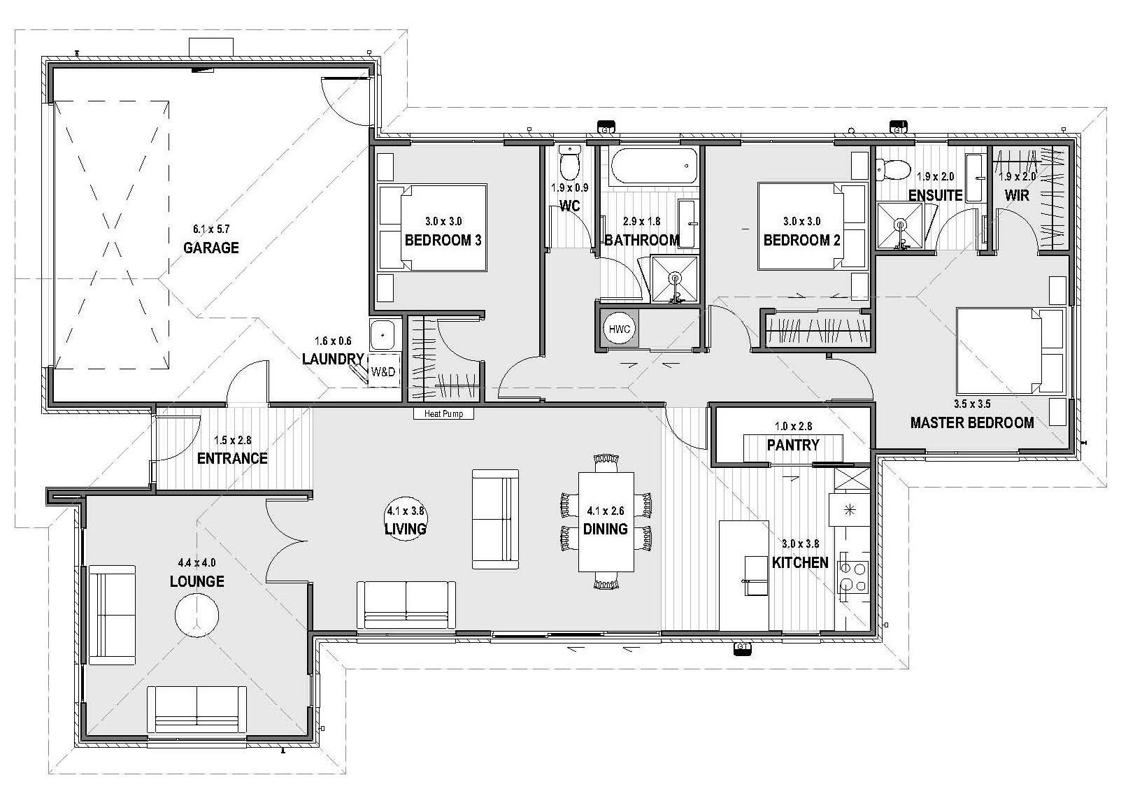 One of our most popular plans, The URBAN 3 blends style, space, and functionality. The open-plan kitchen, dining, and family area creates a seamless space for daily living and entertaining, complete with a walk-in pantry. A separate living room offers a quiet retreat, while three well-sized bedrooms, including a master suite with a walk-in wardrobe and ensuite, provide comfort for the whole family. A family bathroom with a separate WC adds convenience, and the internal access double garage with laundry completes this smart, versatile home—perfect for modern living.