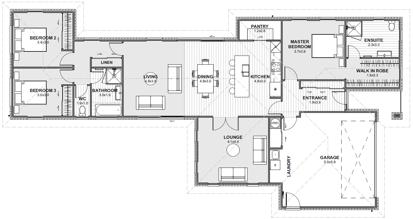 The HANSEN is a thoughtfully designed home balancing space and functionality. The open-plan kitchen, dining, and family area create a central hub, while a separate media room offers a private retreat. The master suite boasts a spacious walk-in wardrobe and ensuite, while two additional bedrooms are tucked away for privacy. A walk-in pantry enhances the kitchen’s efficiency.