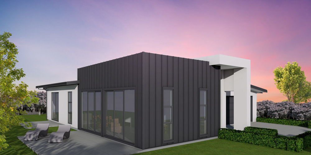 | › Impressive Entranceway | › Plaster/Coloursteel Cladding | |